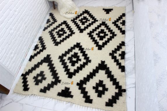 • Гуцульський ліжник вовняний плед Чорно-білий 150х200 см ПРЕМІУМ ЯКОСТІ