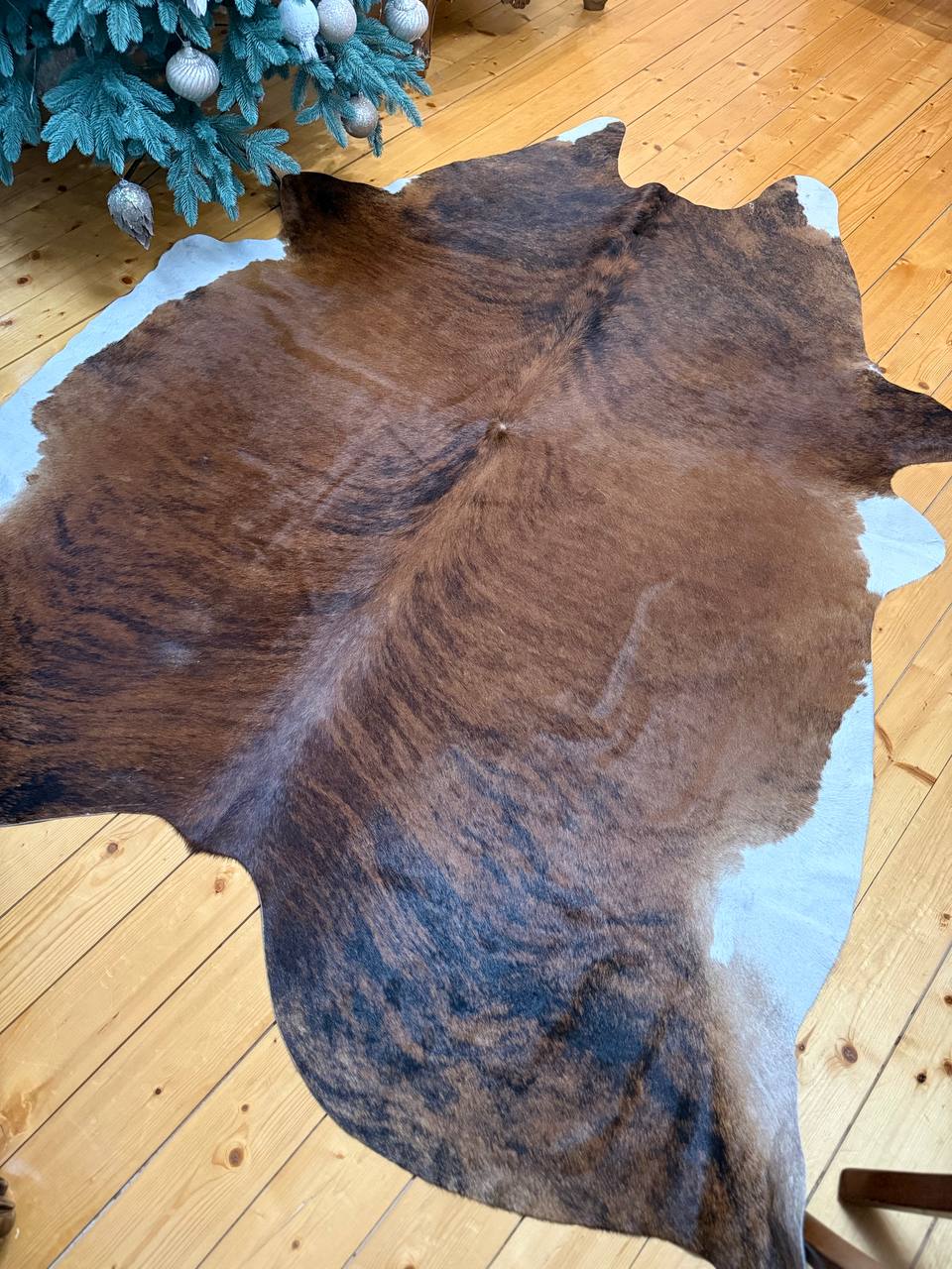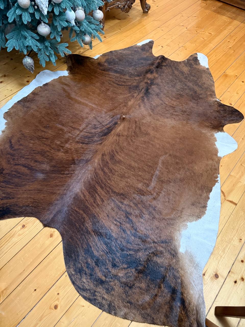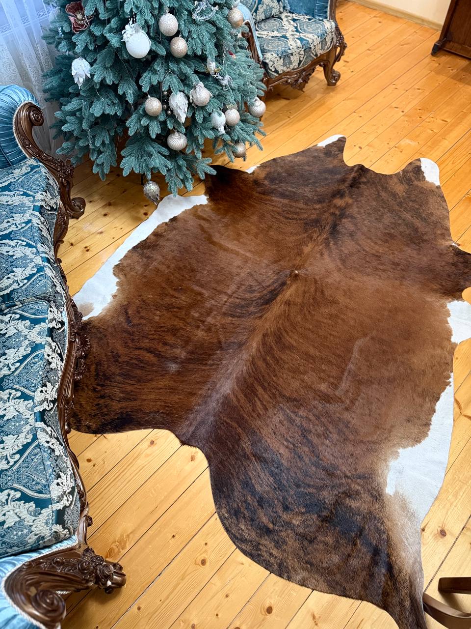 Виріб природних коричневих відтінків гармонійно вписується практично в будь-яку обстановку. Воно буде чудово виглядати біля каміна, поруч із диваном або навіть на підлозі у лазні. Коров’яча шкіра відрізняється високою вологостійкістю. Це рідкісний матеріал, який можна стелити у ванній кімнаті.