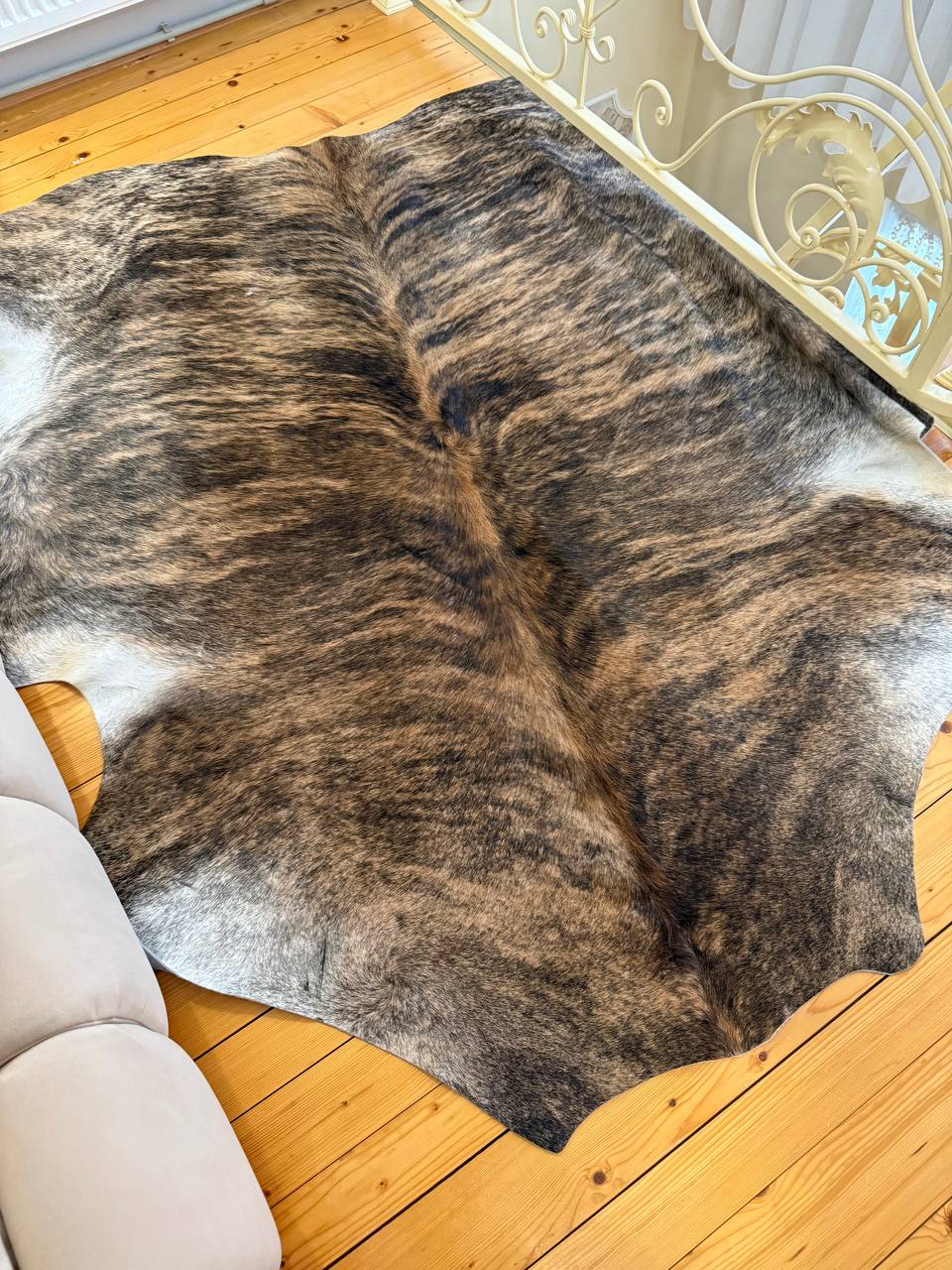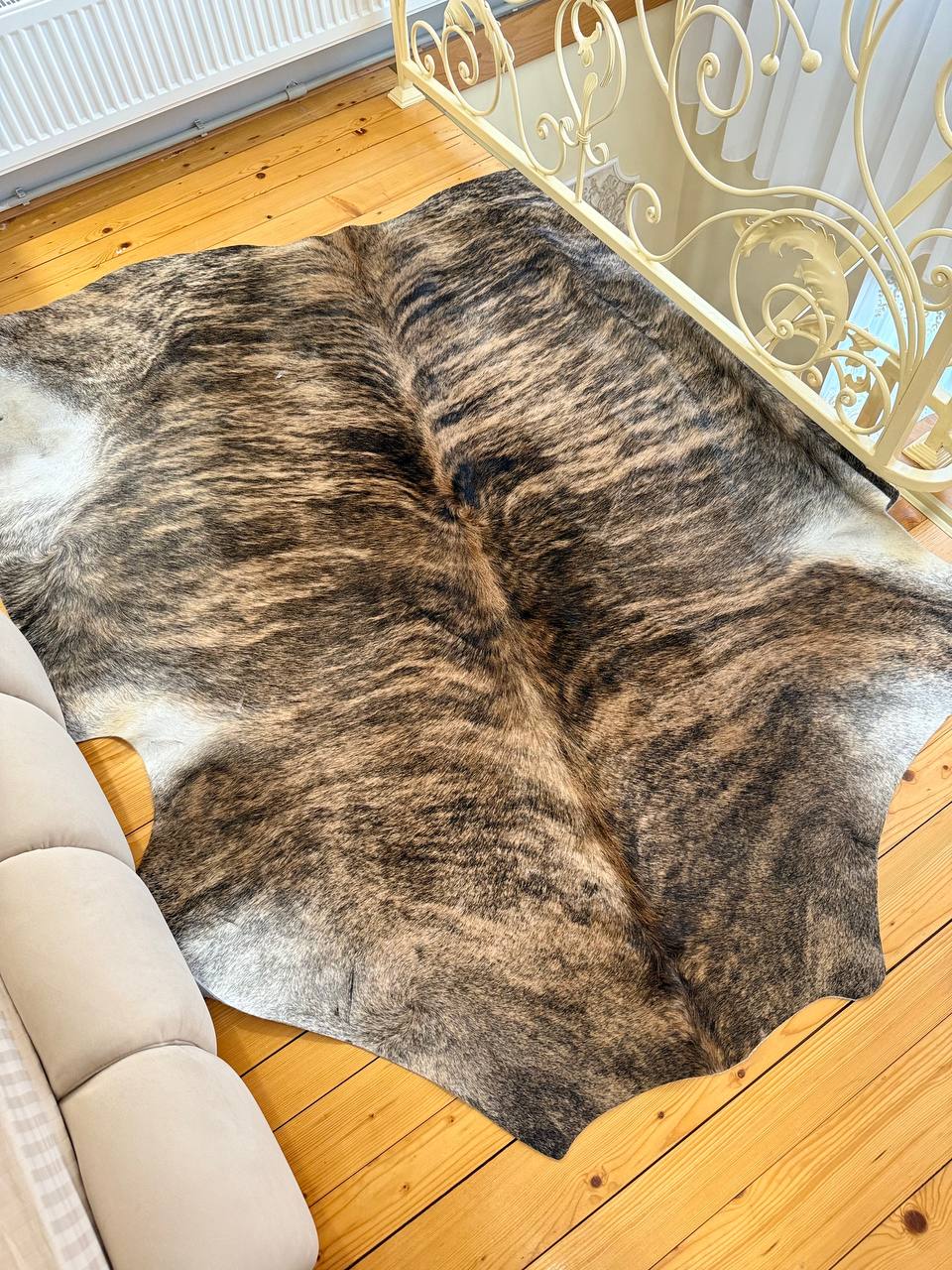Натуральна шкіра корови – розкішний матеріал для прикрашання підлоги чи стін. Дивовижний колір. Такий декор можна побачити у солідних особняках чи модних інтер’єрах міської квартири. Дизайнери використовують коров’ячі шкури, щоб розставити акценти при оформленні приміщень у стилі кантрі, ф’южн, хай-тек чи поп-арт. Виріб природного відтінку коричневого гармонійно вписується практично в будь-яку обстановку. Воно буде чудово виглядати біля каміна, поруч із диваном або навіть на підлозі у лазні. Коров’яча шкіра відрізняється високою вологостійкістю. Це рідкісний матеріал, який можна стелити у ванній кімнаті.