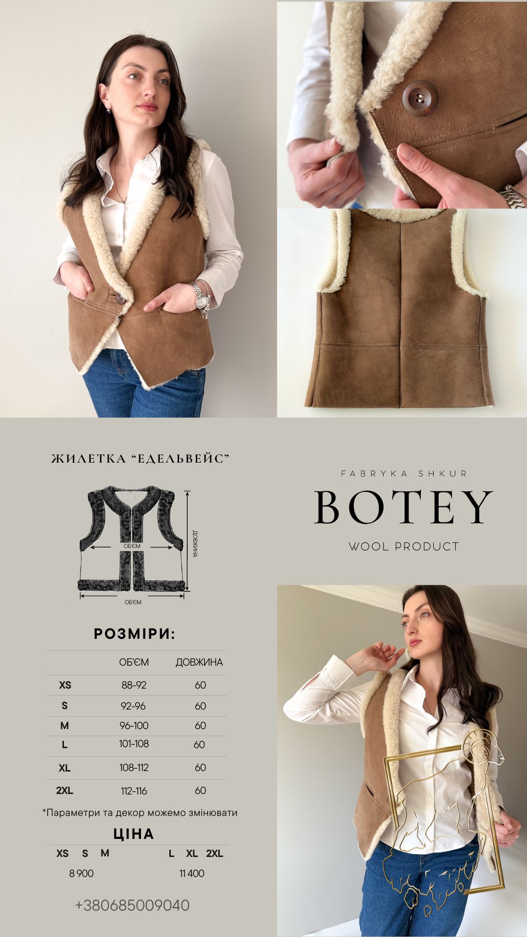 BOTEY — це бренд, який спеціалізується на високоякісних та натуральних виробах з овечої шкіри. Придбати жмлетку “Едельвейс” — це вибір на користь екологічної чистоти, стилю та довговічності. Ми створюємо продукцію, яка буде служити вам довгі роки.