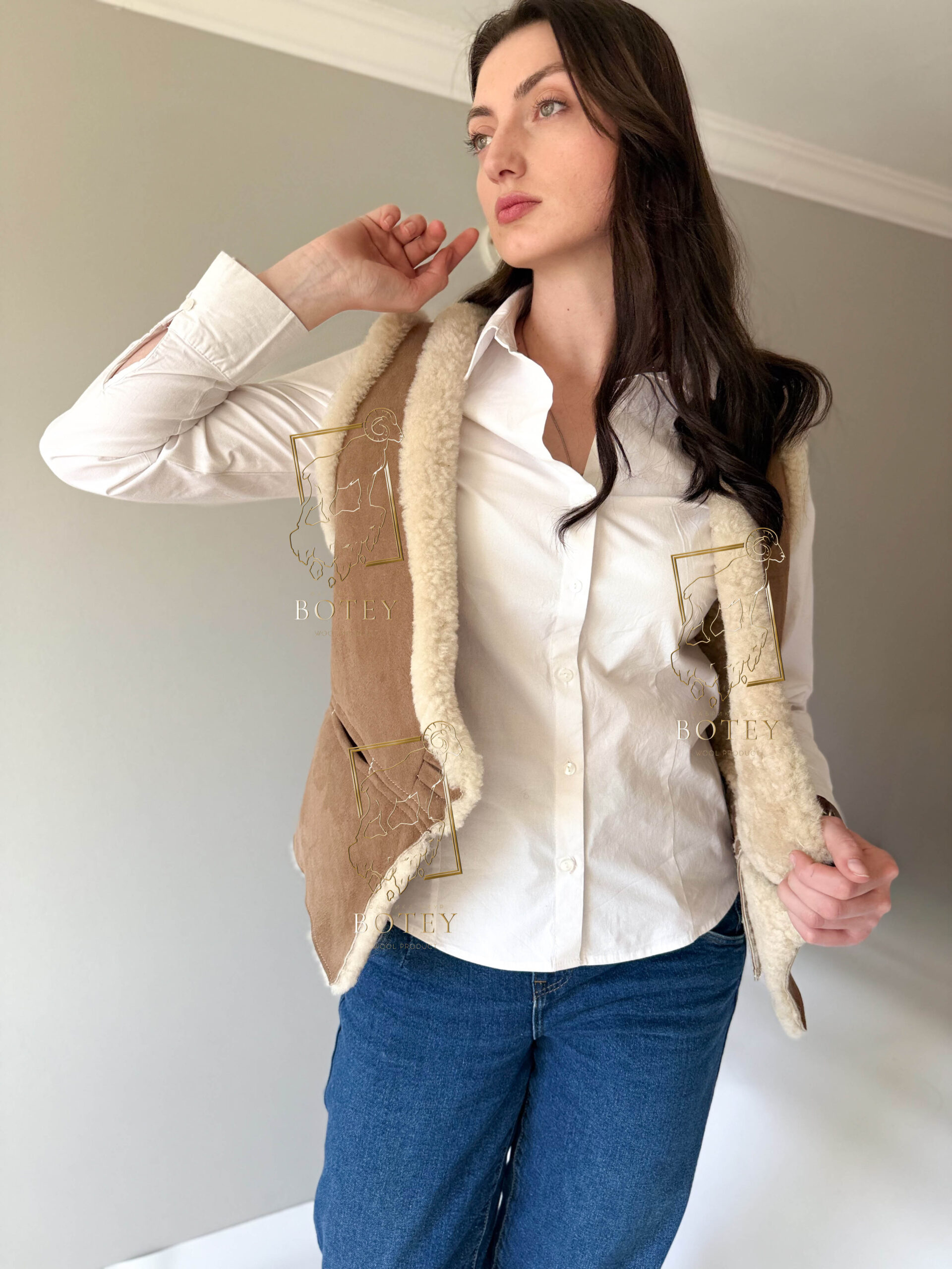🧥 Універсальність для будь-якої пори року: ця безрукавка підходить для осінніх прогулянок або теплих весняних вечорів, а завдяки натуральній овчині вона зберігає комфорт і тепло навіть у холодні місяці.